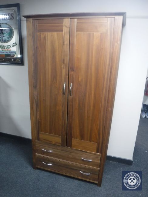 A double door wardrobe fitted two drawers in a rosewood finish