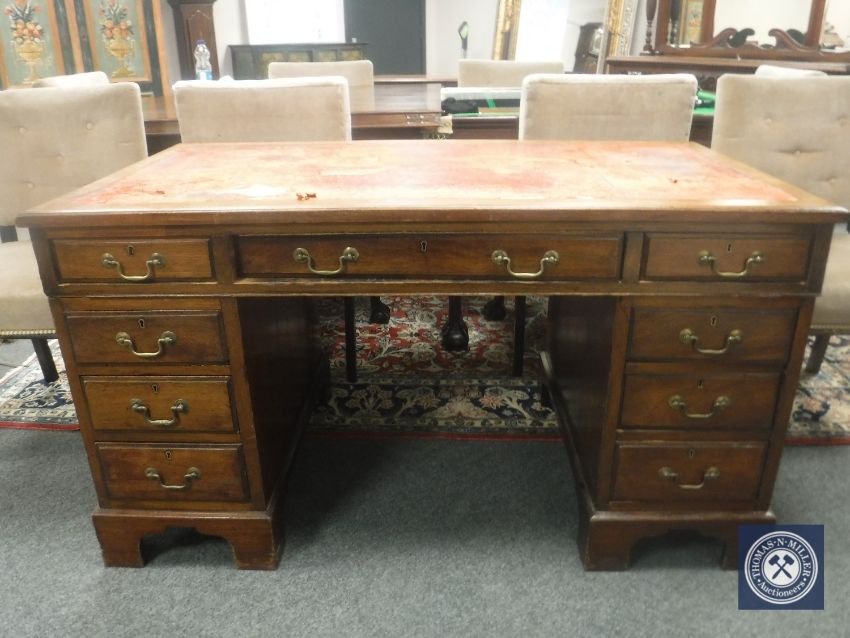 A late Victorian mahogany twin pedestal desk, width 137cm