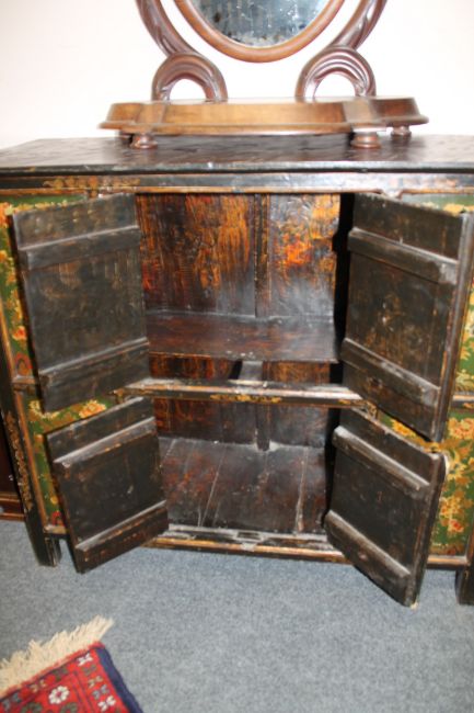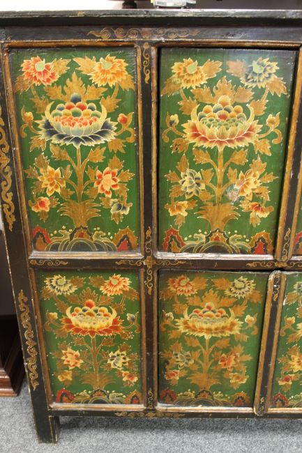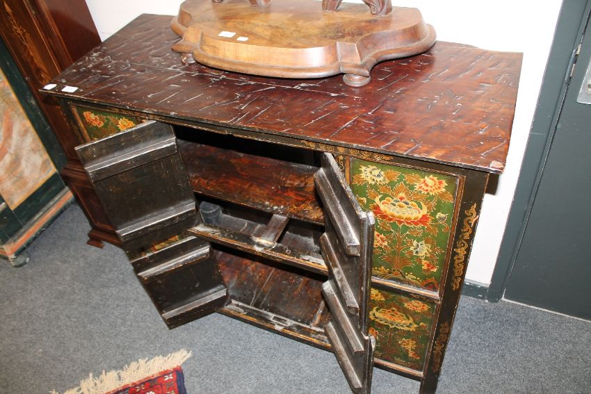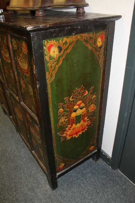 An Eastern polychrome painted four-door low cabinet, width 110cm
