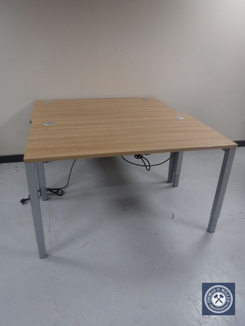 Two adjustable office work stations