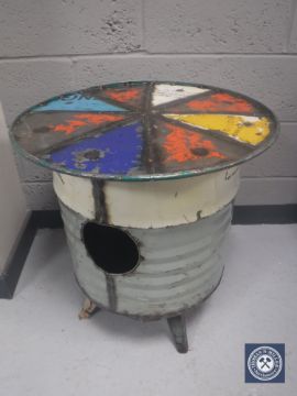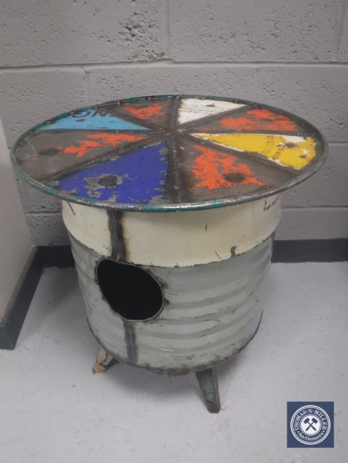 An oil drum occasional table