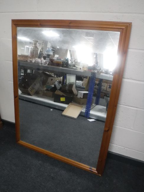 A pair of bedside cabinets together with a further pine bedside cabinet and a pine three-drawer bedside chest