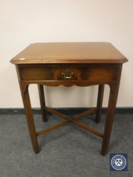 An early 20th century mahogany side table, fitted a drawer, by Waring & Gillow Ltd, numbered 72206, width 61cm