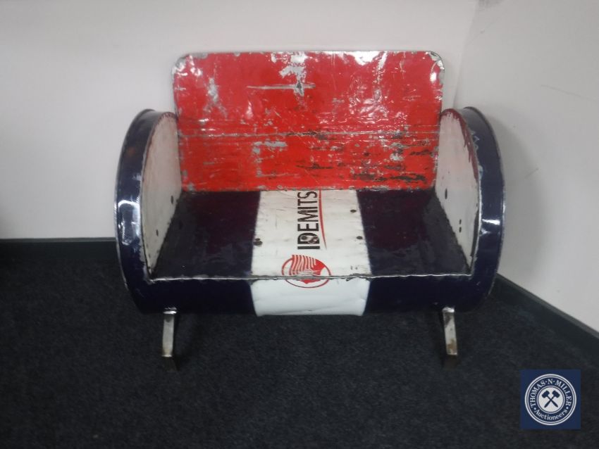 An oil drum bench