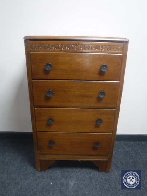 A mid 20th century oak four drawer bachelor's chest