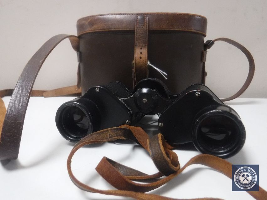 A pair of leather cased Steptron 8 x 30 field glasses by Ross of London.