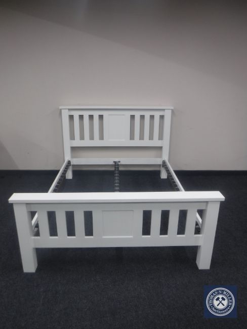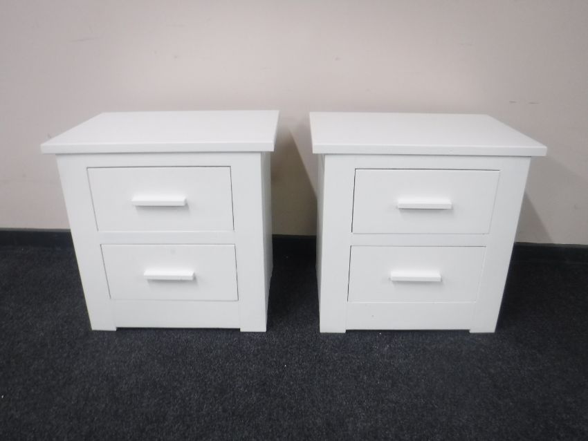 A contemporary painted 4'6 bed frame together with a pair of contemporary painted two-drawer bedside chests