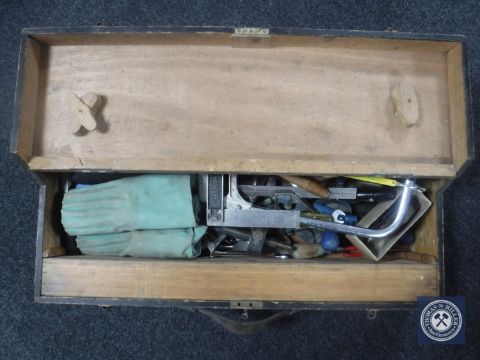 A joiner's tool box with hand tools