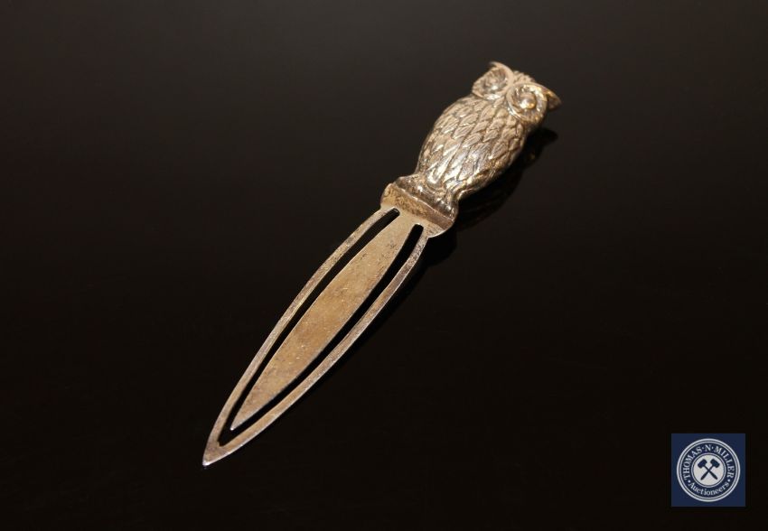 A silver bookmark in the form of an owl