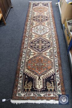 A Persian design runner on blue ground, 293 cm x 77 cm