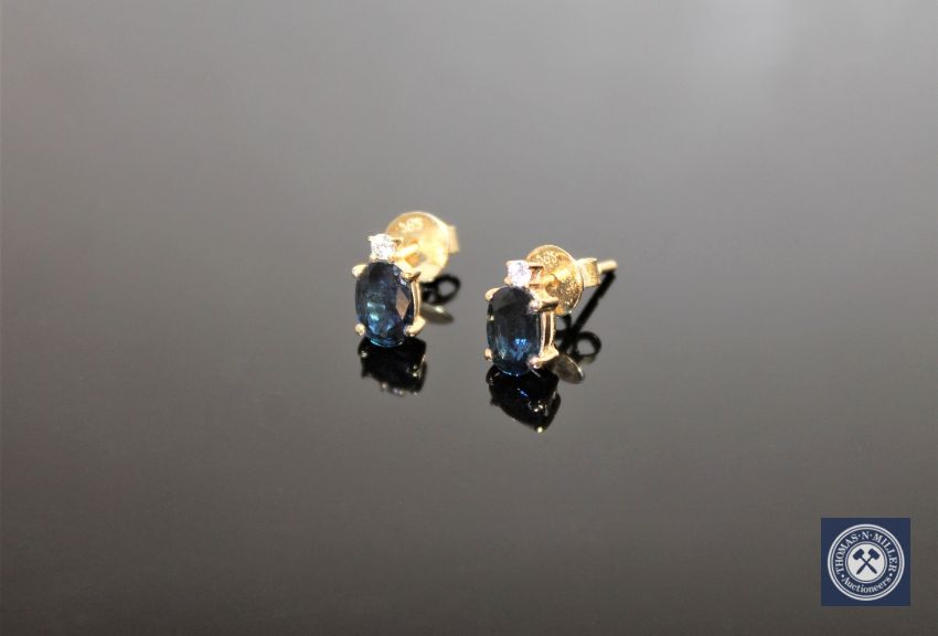 A pair of 14ct gold sapphire earrings, with post fittings