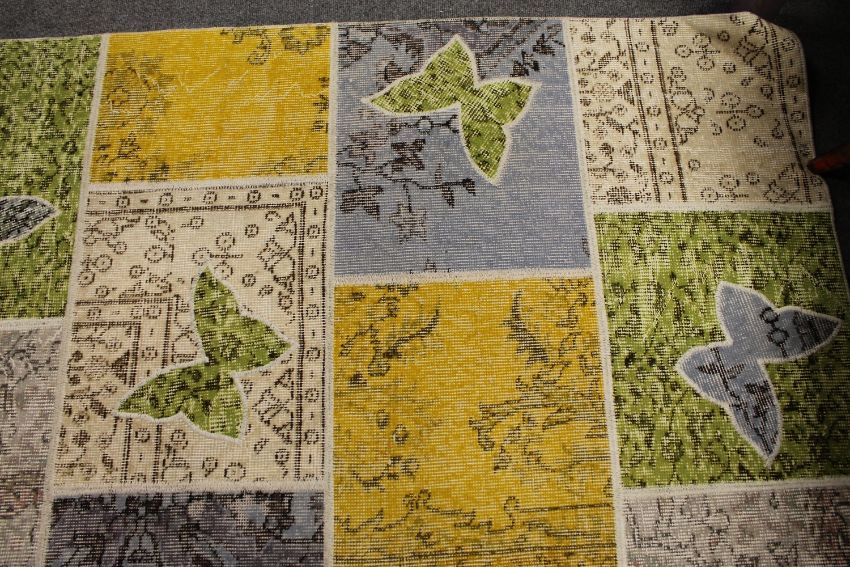 A contemporary butterfly pattern rug, 243cm by 160cm