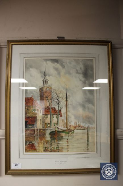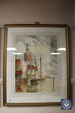 L Van Staaten : Veere, Zeeland, watercolour, 40 cm x 30 cm, signed, framed.
