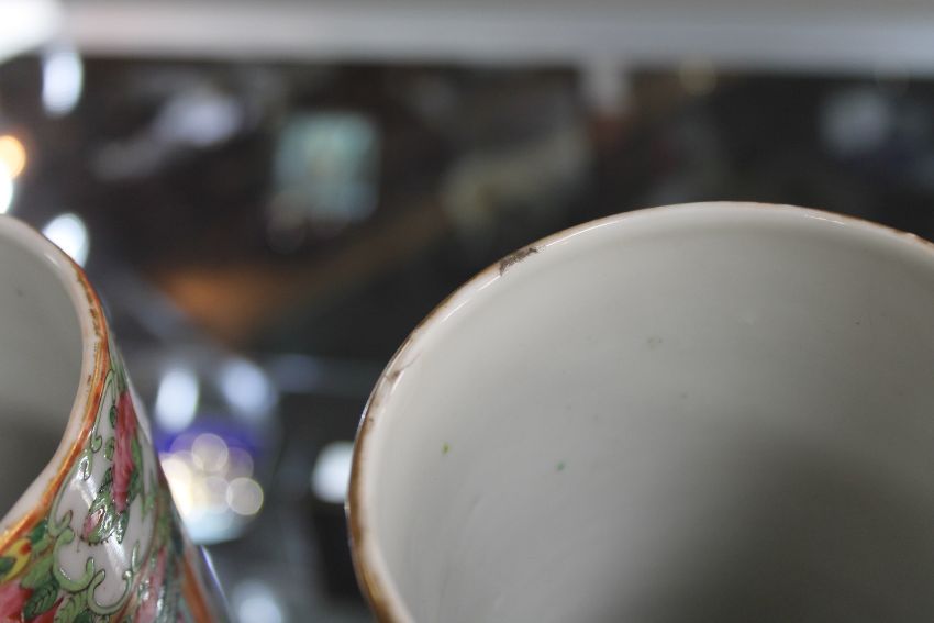Wear to gilding. Some nicks to the rims. Undersides with hairline cracks.