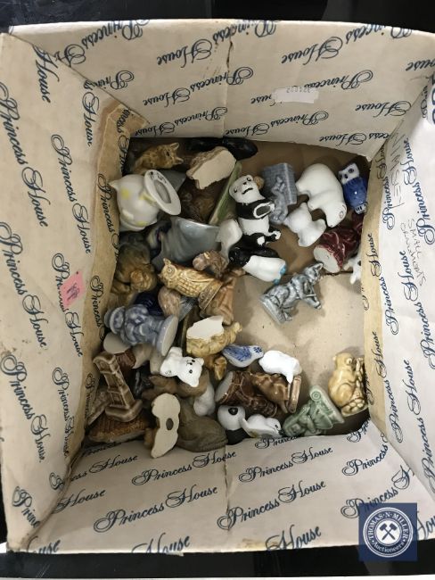 A box of Wade whimsies and similar figures