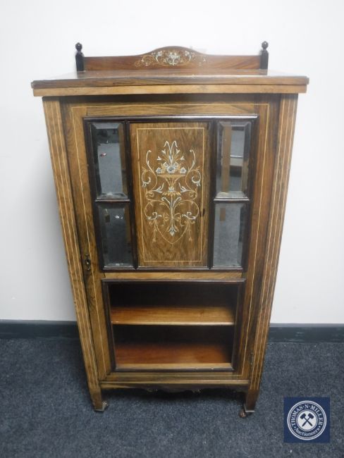 A Victorian inlaid rosewood music cabinet