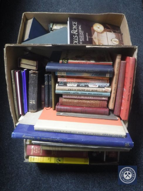 Three boxes of 20th century and later volumes : novels, modern gardens, 75 Years of Rolls Royce etc