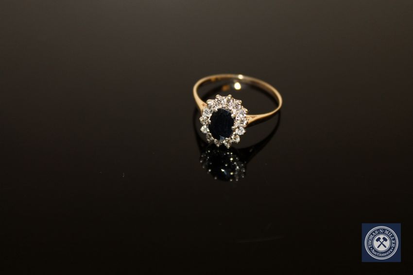 A sapphire and diamond cluster ring, size P
