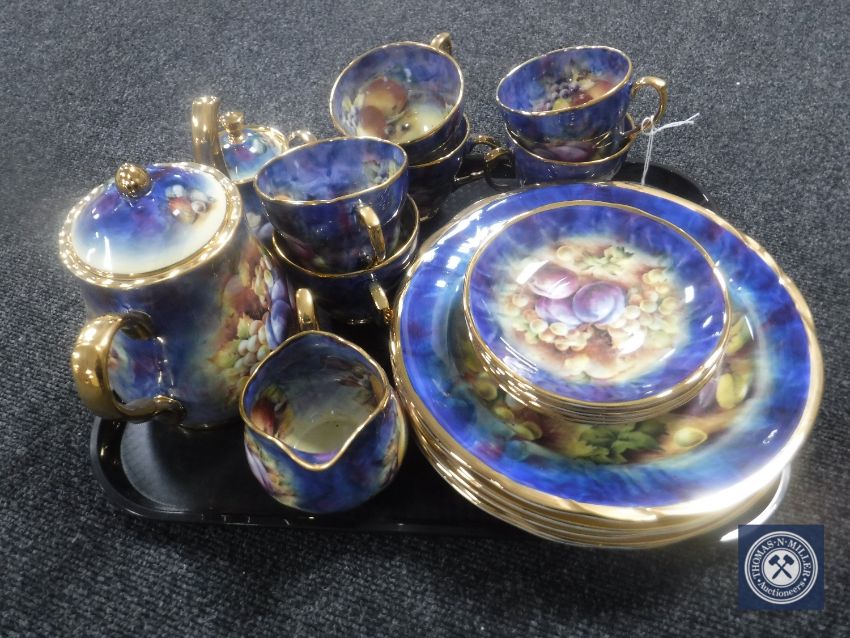 A tray containing a twenty-one piece hand-painted Marquis tea and dinner service