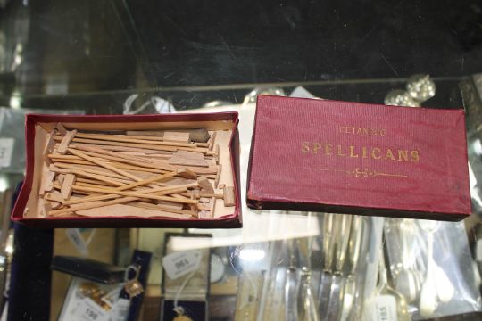 An interesting collection of vintage games : Dominoes, Happy Families, Spellicans, Snap, Cries of London, Kendall's Picture Alphabet, Miniature Cribbage, Alphabet Cards, Picture Puzzles, etc, and also a collection of salt spoons and other spoons. (Q)