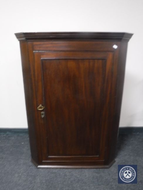 A George III mahogany hanging corner cupboard