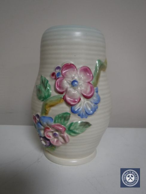 A Clarice Cliff Newport Pottery ribbed floral vase, height 15.5 cm