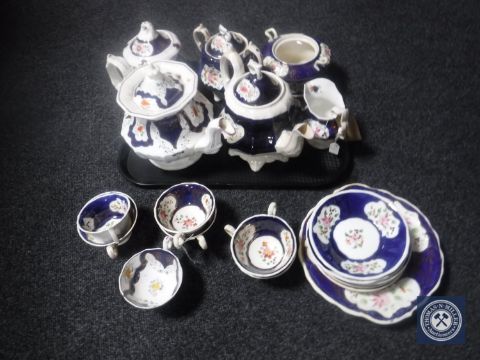 A tray containing twenty-one pieces of Victorian lustre tea china