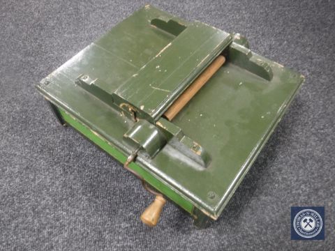A painted table top music box with winder
