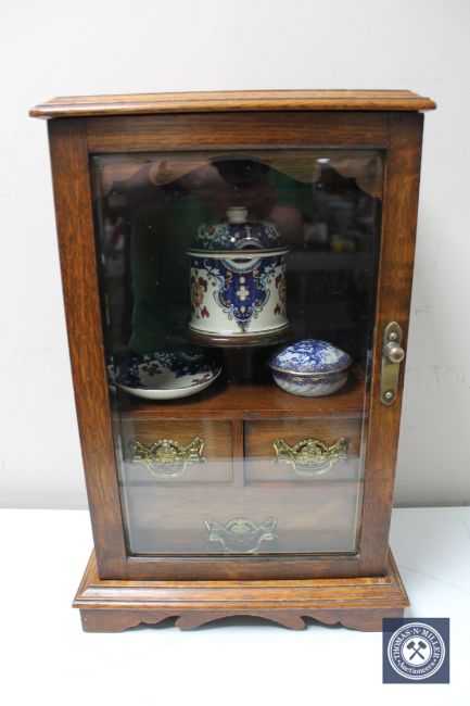 A Victorian oak glazed door fitted smoker's cabinet