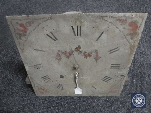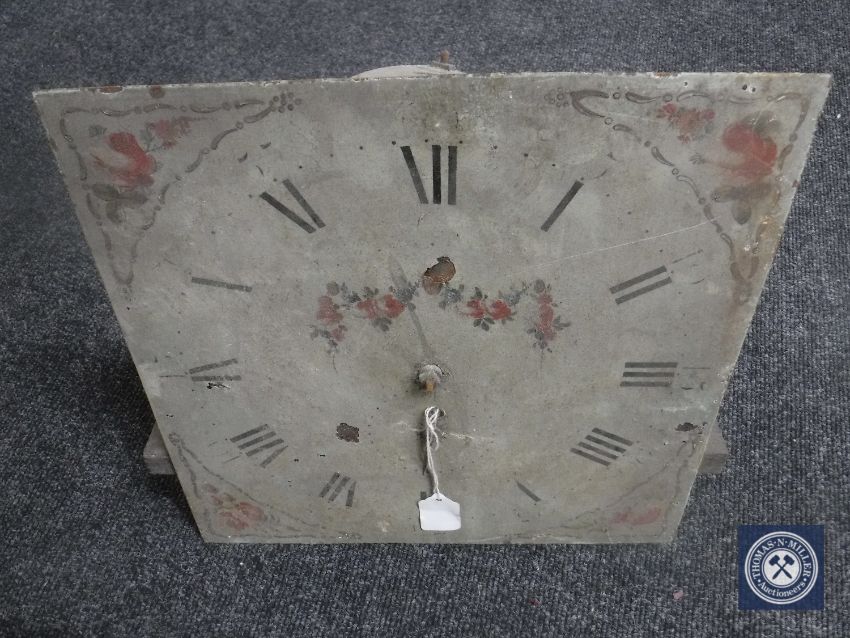 A 19th century longcase clock movement with hand painted dial