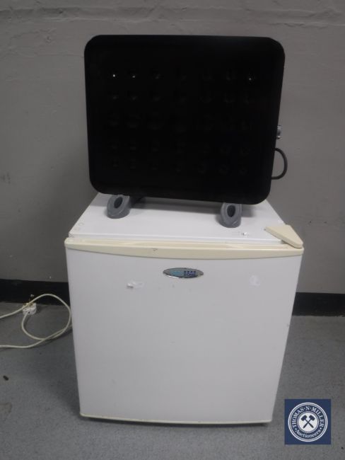 A Coolzone bench top fridge and an electric heater