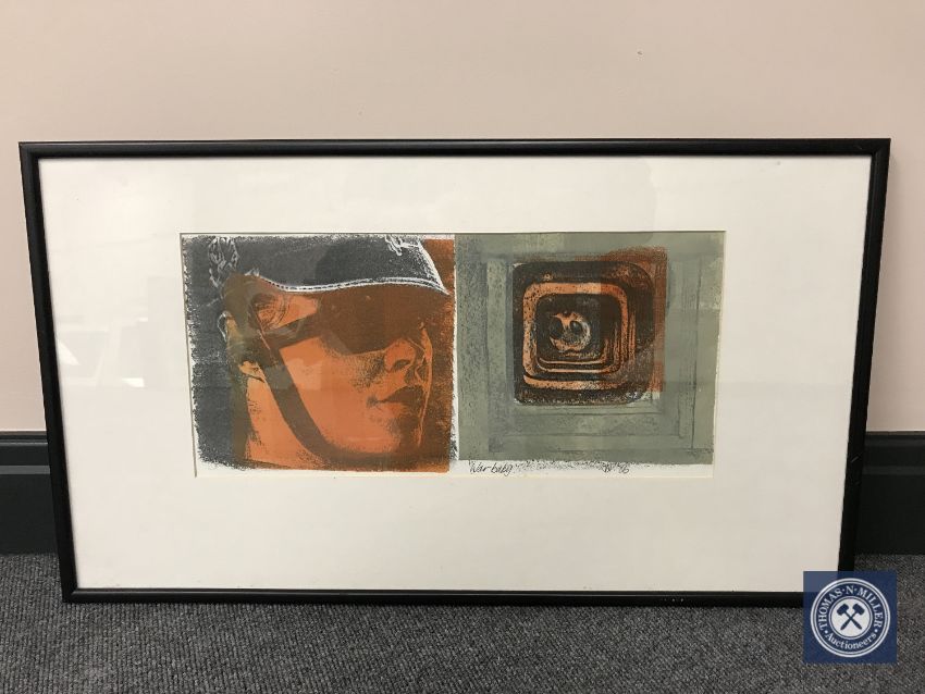 Donald James White : War baby, tri coloured print, signed, 56 cm x 34 cm, framed.