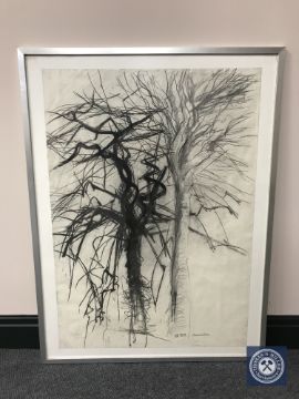 Donald James White : Jesmond Dene, charcoal, 59 cm x 84 cm, framed.