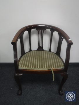 A Victorian mahogany bow-backed armchair on claw and ball feet