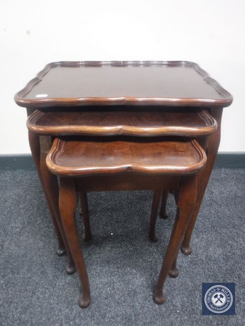 A nest of three mahogany pie crust edge tables