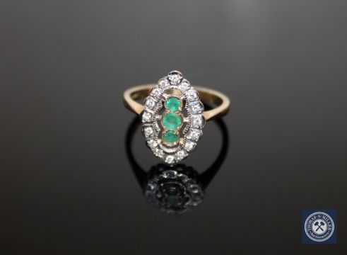 A 9ct gold emerald and diamond cluster ring, size N