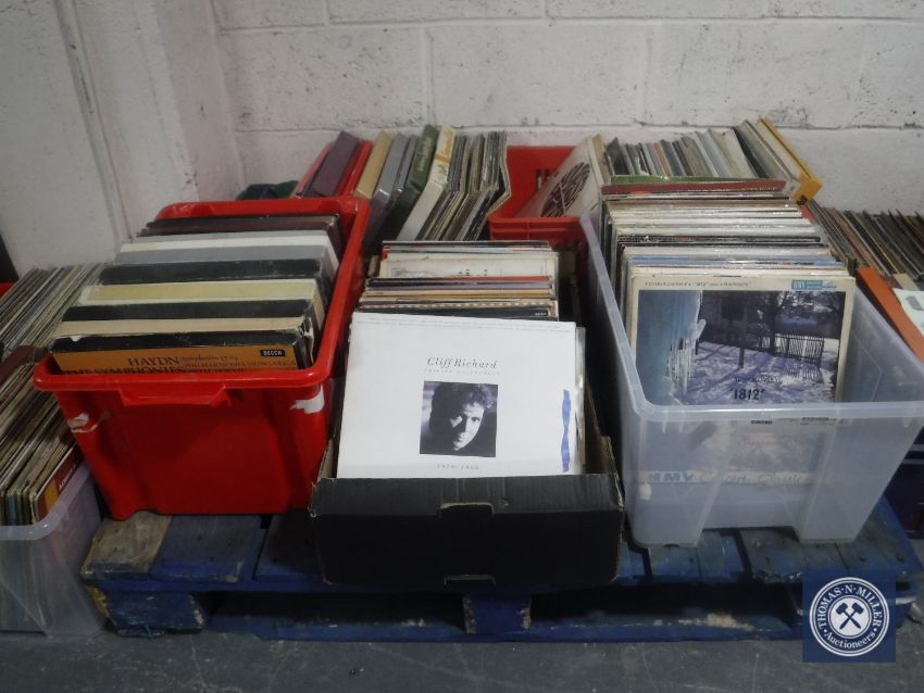 Nine boxes and crates containing assorted LP records and LP box sets : classical and easy listening