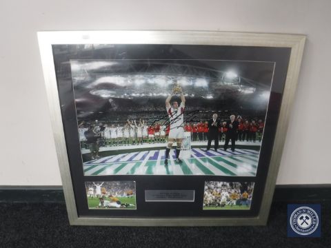 A framed 2003 English Rugby Cup montage signed by Martin Johnson