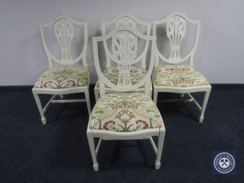Four painted Hepplewhite style dining chairs