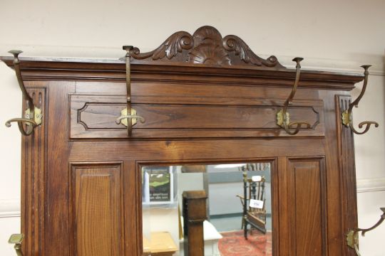The brass umbrella rail is detached at both sides and will require soldering. Otherwise this hall stand is in good condition. Height 213cm.
