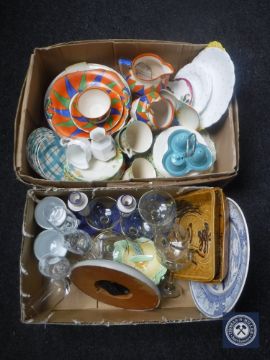 Two boxes of assorted china and glass ware including tea services, Shelley side plates, Royal Worcester vase etc