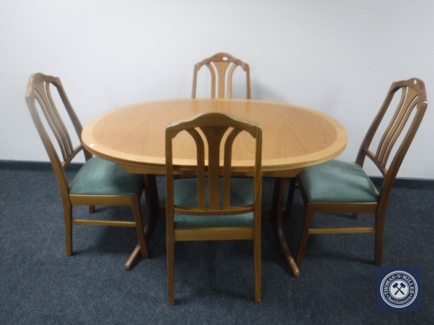 A Parker Knoll teak oval extending dining table with four chairs