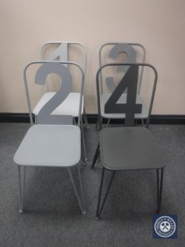 Four metal French style cafe chairs, numbered 1 to 4
