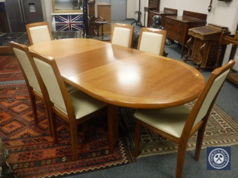A Skovby contemporary extending dining table (total length 225cm) and six chairs