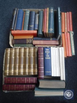 Three boxes of 20th century volumes : History of Freemasonry, British Wild Flowers, Bibles, The Saturday Books etc