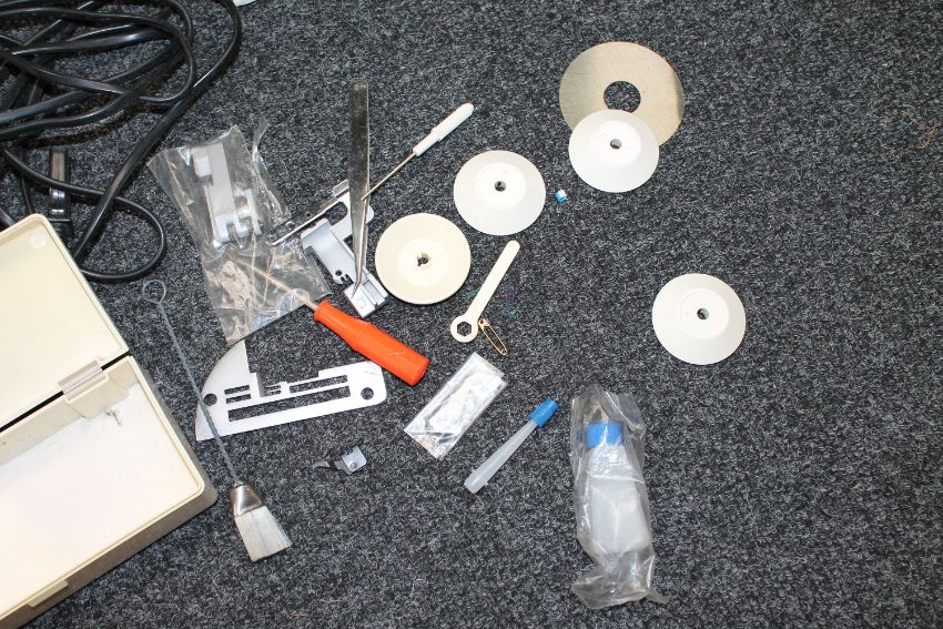 See additional images, these show all parts which are present with the sewing machine. It has not been tested.
