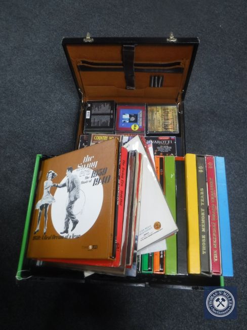 A crate and a briefcase containing LP's and CD's including swing music, opera etc