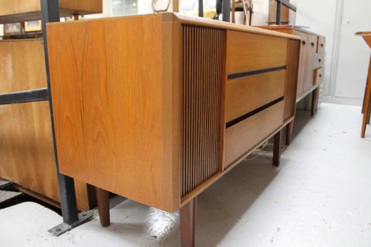 When plugged in the speakers give off some white noise and the turntable spins. This would therefore appear to be in good working order. One or two insignificant scuffs to the teak but cosmetically in very good condition.