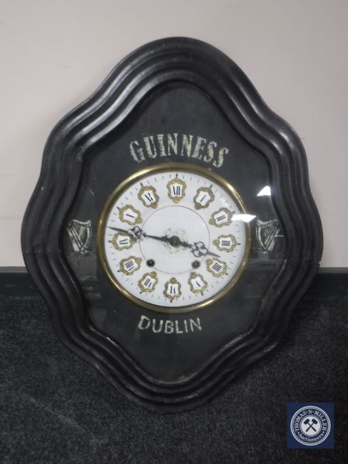 A late 19th century continental wall clock with gilt and enamelled dial bearing Guinness advertising
