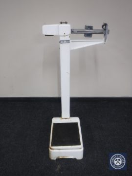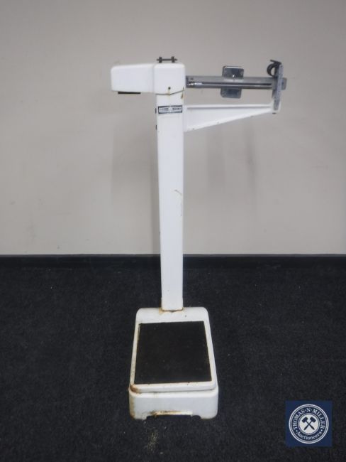 A set of enamelled Mordue Brothers weighing scales